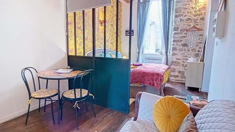 Das Les Glycines Oloron ist die ideale Unterkunft in Oloron-Sainte-Marie, direkt am Fluss Gave d'Oloron gelegen. Das Studio bietet kostenfreies WLAN und einen wunderschönen Blick auf die Stadt. Genießen Sie den Wohnbereich mit TV und das Badezimmer mit Dusche und Haartrockner. Ein köstliches kontinentales Frühstück wird täglich serviert. Die voll ausgestattete Küche ermöglicht es Ihnen, Ihre eigenen Mahlzeiten zuzubereiten. In der Umgebung gibt es zahlreiche Freizeitaktivitäten wie Radfahren, Reiten und Angeln. Der Bahnhof Oloron-Sainte-Marie ist nur einen 10-minütigen Spaziergang entfernt. Paare werden die Lage dieser Unterkunft besonders schätzen.