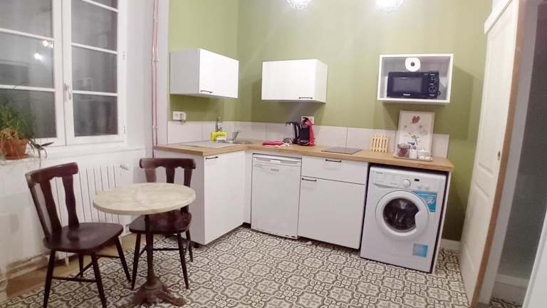 Das Studio im Les Glycines Oloron bietet Ihnen einen komfortablen Wohnbereich mit TV, der zum Entspannen einlädt. Das Badezimmer ist mit einer Dusche und einem Haartrockner ausgestattet. Kostenloses WLAN ist ebenfalls verfügbar, damit Sie mit Ihren Lieben in Verbindung bleiben können. Die voll ausgestattete Küche bietet Ihnen die Möglichkeit, Ihre eigenen Mahlzeiten zuzubereiten. Sie finden dort eine Mikrowelle, einen Backofen, eine Waschmaschine und eine Kaffeemaschine.