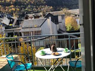 Verbringen Sie einen erholsamen Aufenthalt im Les Jardins du Casino T2 bis- 4 personnes-Tarif cures in Luchon. Das Apartment bietet Ihnen einen herrlichen Bergblick und kostenfreies WLAN. Genießen Sie die gut ausgestattete Küche, die Terrasse und die Nähe zu Outdoor-Aktivitäten wie Wandern und Skifahren.