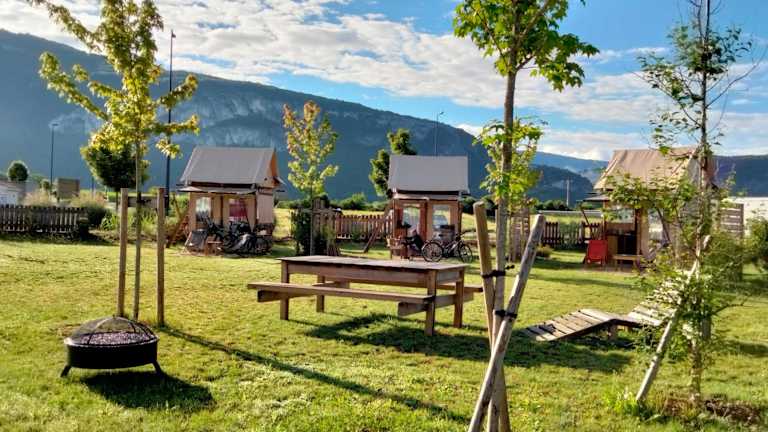 Erleben Sie einen entspannten Aufenthalt im Les Lodges de la ViaRhôna - Tentes Lodges, das sich 29 km von der SavoiExpo entfernt befindet. Genießen Sie die Terrasse, Grillmöglichkeiten und die Gemeinschaftsküche. Kostenloses WLAN ist in allen Bereichen verfügbar. Das kontinentale Frühstück sorgt für einen guten Start in den Tag. Kinder können sich auf dem Kinderspielplatz austoben, während Erwachsene im Garten oder in der Gemeinschaftslounge entspannen können. Die Unterkunft bietet eine ideale Lage für Wanderungen und Radtouren. Besuchen Sie den Elefantenbrunnen oder den See Bourget in der Nähe. Der Flughafen Chambéry-Savoie liegt nur 21 km entfernt.