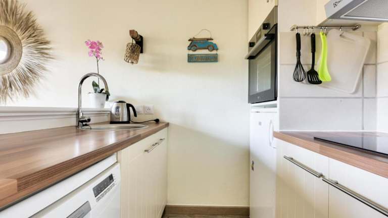 Die Ferienwohnung umfasst zwei Schlafzimmer, ein Wohnzimmer und eine voll ausgestattete Küche, die unter anderem einen Kühlschrank und einen Geschirrspüler beinhaltet. Die Unterkunft ist Nichtraucher, und es steht WLAN zur Verfügung, teilweise gegen Gebühr.