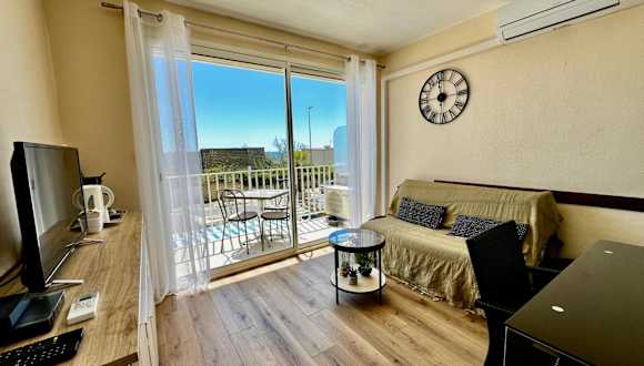Die Ferienwohnung Les Sables de Palavas - T2 à 50m de la plage, clim bietet eine angenehme Umgebung mit Meerblick und ist mit einer Terrasse sowie einem Balkon ausgestattet. Klimaanlage sorgt für einen komfortablen Aufenthalt.