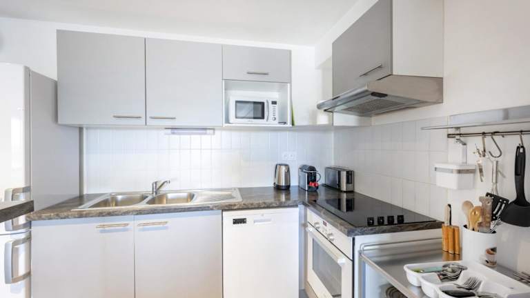 Die Apartments im Les Terrasses de Louise bieten Ihnen eine komfortable Unterkunft zur Selbstverpflegung. Jedes Apartment verfügt über einen TV, einen Balkon und eine nach Süden ausgerichtete Terrasse, auf der Sie den Blick auf den Garten genießen können. Die Küche ist gut ausgestattet mit einem Geschirrspüler und einer Mikrowelle, so dass Sie sich Ihre eigenen Mahlzeiten zubereiten können. Das Badezimmer ist mit einem Haartrockner ausgestattet.