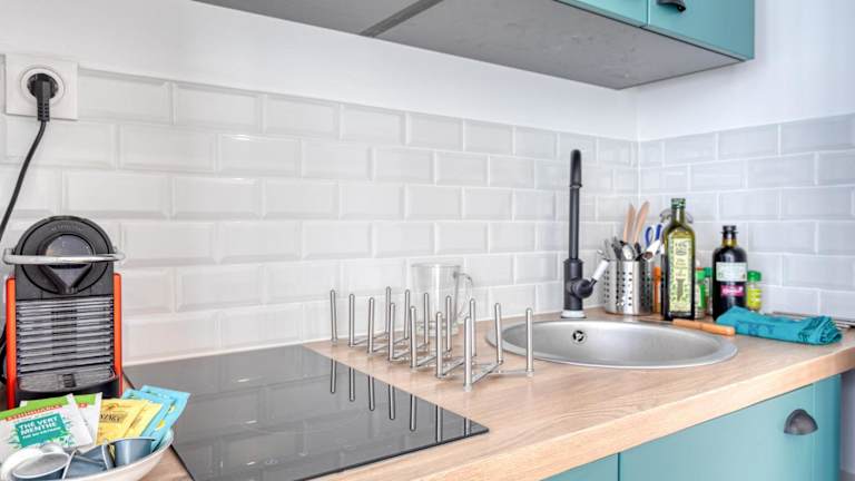 Die Wohneinheiten sind mit einer Küche ausgestattet, die einen Essbereich umfasst. Zur Ausstattung gehören ein Kühlschrank, eine Mikrowelle und eine Herdplatte sowie eine Kaffeemaschine und ein Wasserkocher.