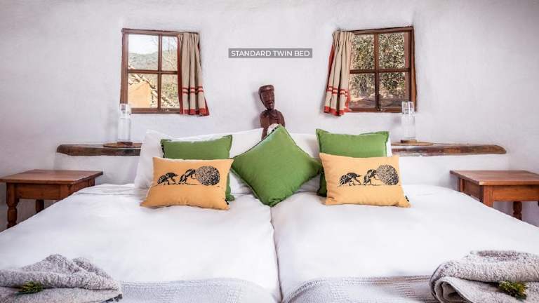 Das Leshiba Wilderness bietet drei verschiedene Arten von Unterkünften. In der Venda Village Lodge erwarten Sie luxuriöse Suiten mit privaten Tauchbecken und einem herrlichen Blick über das Tal. Alle Unterkünfte verfügen über ein eigenes Bad, hochwertige Bettwäsche aus reiner Baumwolle und Solarlampen. Das Hotel legt großen Wert auf Nachhaltigkeit und umweltfreundliche Praktiken.