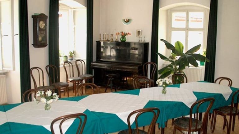 Unser Café bietet eine Anzahl hausgemachter Speisen und auch eine Auswahl an Getränken zu sehr moderaten Preisen, dazu nachfolgend einige Beispiele. (Preise in PLN, Umrechnung in Euro (etwa): Teilen durch 4!) Tagessuppe 5.- Gemischter Salat mit Vinaigrette-Sauce oder Joghurt 5.- Spaghetti mit Tomatensauce 7.- Würstchen, Brot, Senf, Saure Gurken 8.- Bigos mit Brot (Bigos: Sauerkraut, Weißkohl, Fleisch und Wurst zusammen gekocht) 12.- Karczek (im Ofen mit Kräutern und Knoblauch zubereiteter Schweinenacken, dazu Kartoffeln und ein Salat) 22.- Wiener Schnitzel mit Kartoffeln und Salat 22.- Hühnerfilet mit Reis und Gemüse 22.- Rindergulasch mit Kartoffeln oder Spätzle, dazu Saure Gurken 24.- Hausgemachter Käsekuchen 5.- Kuchen des Tages 5.- Eisbecher ( 3 Kugeln Eis, Früchte, Schlagsahne)