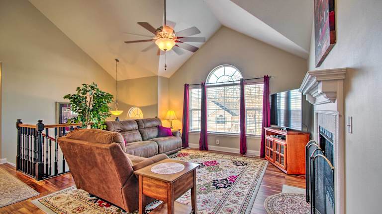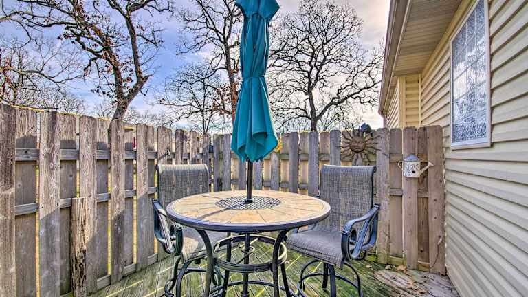 Das Ferienhaus Less Than Half-Mi to Marinas Osage Beach Home with Deck! bietet einen Whirlpool und ist eine Nichtraucherunterkunft. Es steht kostenloses WLAN zur Verfügung und ein Privatparkplatz ist vor Ort vorhanden. Handtücher und Bettwäsche werden bereitgestellt.