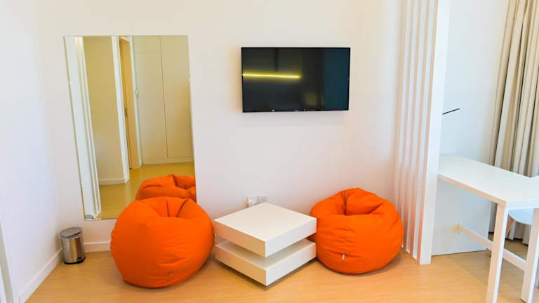 Die Unterkunft Let the sea's infinity rock you bietet eine Ferienwohnung mit einem Fitnesscenter, einer Terrasse und Zugang zu einem Balkon. Sie liegt direkt am Strand und ermöglicht damit eine entspannte Atmosphäre.