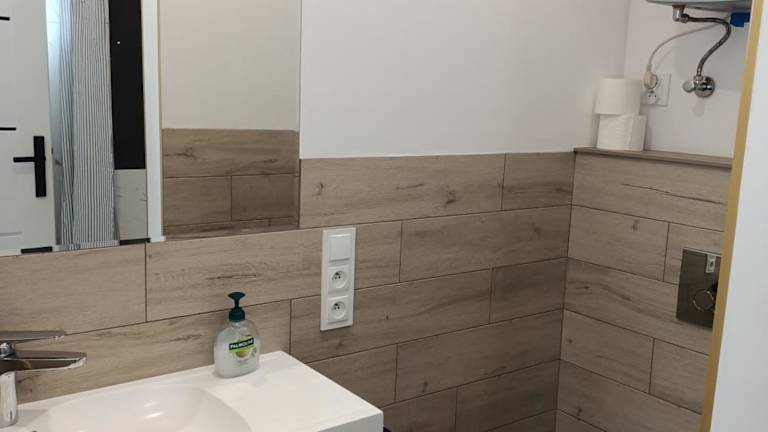 Das Apartment verfügt über ein gemütliches Schlafzimmer, ein Wohnzimmer mit Flachbild-TV und eine voll ausgestattete Küche mit Kühlschrank und Mikrowelle. Das Badezimmer ist mit einer Dusche ausgestattet und Handtücher und Bettwäsche werden bereitgestellt. Kostenloses WLAN ist ebenfalls verfügbar.