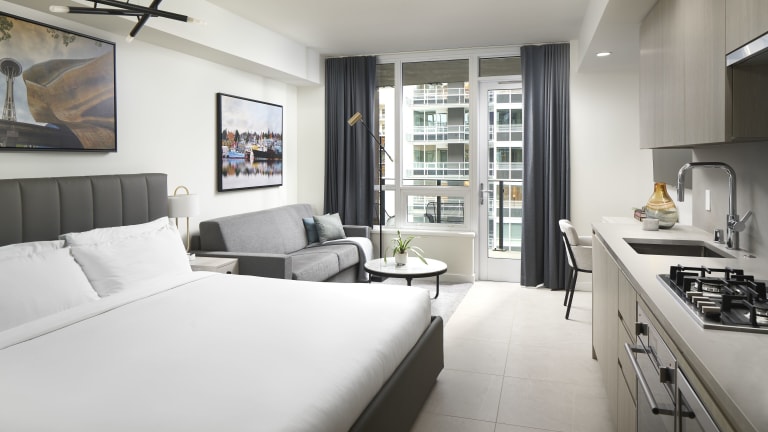 Alle Gästezimmer in der Unterkunft Level Seattle Downtown - South Lake Union sind mit einem TV und einer Küche ausgestattet. Die Zimmer verfügen über einen Kleiderschrank.