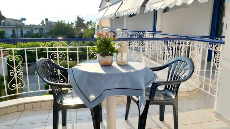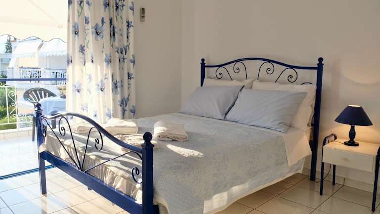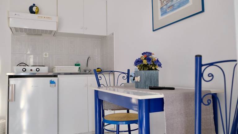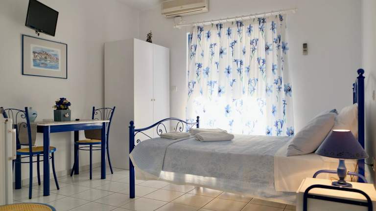 Die klimatisierten Studios der Leventis Apartments sind komfortabel eingerichtet und verfügen über einen eigenen Balkon, auf dem Sie die schöne Umgebung genießen können. Jedes Studio ist mit einer Küchenzeile ausgestattet, die über Kochplatten, einen Kühlschrank und einen Essbereich verfügt. Zur weiteren Ausstattung gehören ein TV und ein eigenes Badezimmer mit Dusche.