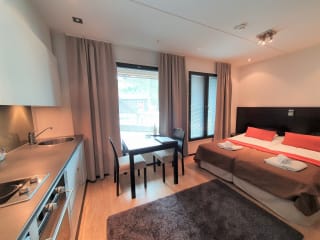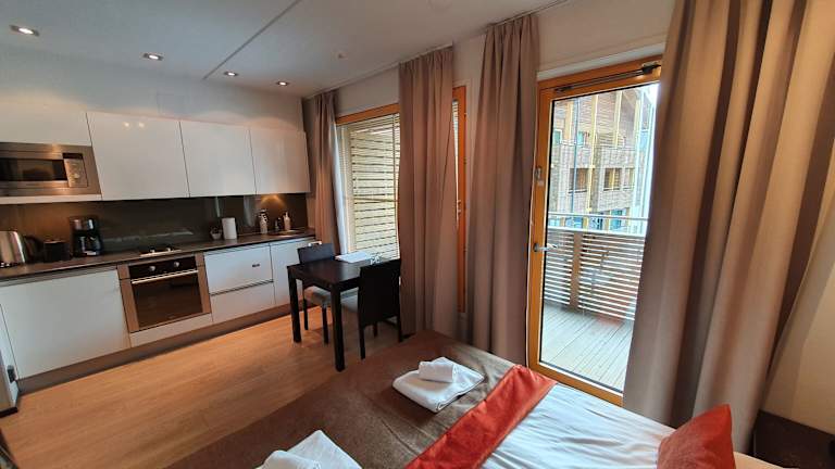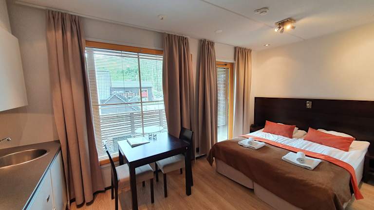 Das Aparthotel Levi Suites Levi Gold bietet Ihnen den perfekten Ausgangspunkt für Ihren Skiurlaub im Zentrum von Levi. Mit einer idealen Lage nur 70 m von den Pisten und Skiliften entfernt, können Sie bequem in das Skivergnügen starten. Die Apartments sind modern eingerichtet und verfügen über eine eigene Sauna sowie kostenfreien Internetzugang. Genießen Sie die komplett ausgestattete Küche und den Flachbild-TV in Ihrem Apartment. Einige Apartments bieten zudem einen eigenen Balkon, einen Kamin und einen Whirlpool. In der Umgebung finden Sie eine Vielzahl von Geschäften, Bars und Restaurants. Für zusätzliche Unterhaltung können Sie das Freizeitzentrum mit Bowlingbahn direkt neben dem Hotel besuchen.