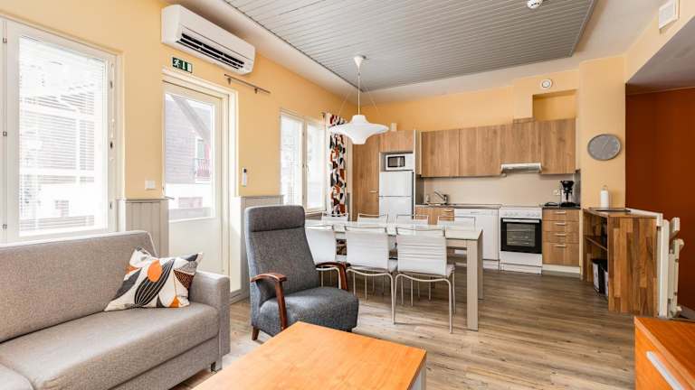 Das Levikaira Apartments - Alpine Chalets befindet sich in Levi, nur 100 Meter von der Piste entfernt. Die Apartments sind Teil des Hauses Levin Kultarinne und bieten eine ideale Ausgangslage für alle, die die Natur und die Aktivitäten in der Umgebung genießen möchten. In der Nähe finden Sie Restaurants, Bars und Einkaufsmöglichkeiten. Das Congress & Exhibition Centre Levi Summit ist nur 800 Meter entfernt und das Spa Water World, Levi erreichen Sie nach 500 Metern. Der Flughafen Kittilä ist 12 km entfernt und der Bahnhof Kolari ist in 90 Minuten mit dem Auto erreichbar.