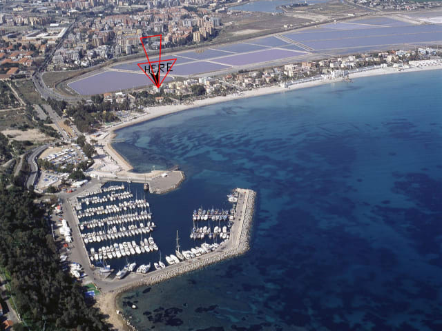 Das Hotel befindet sich nur 100 m vom Strand Poetto entfernt, in der Nähe des Hafens von Marina Piccola, der in etwa 5 Gehminuten erreichbar ist. Das Stadtzentrum von Cagliari liegt 5 km entfernt, und der Flughafen Cagliari-Elmas ist in 20 Fahrminuten zu erreichen. In der Umgebung befinden sich Restaurants, Bars, ein Markt und eine Apotheke sowie eine natürliche Flamingo-Oase.