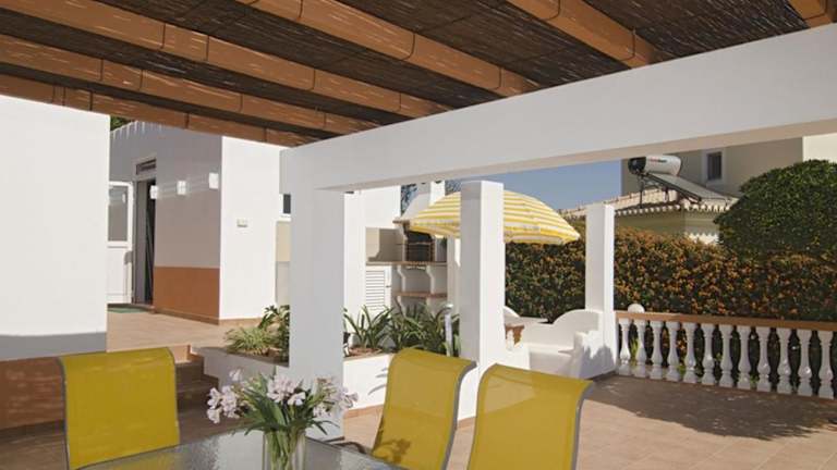 Die Villa bietet eine vollausgestattete Küche mit Kühlschrank, Geschirrspüler und Ofen, die für die Zubereitung von Mahlzeiten genutzt werden kann. Es sind keine Informationen zu weiteren Verpflegungsmöglichkeiten vorhanden.
