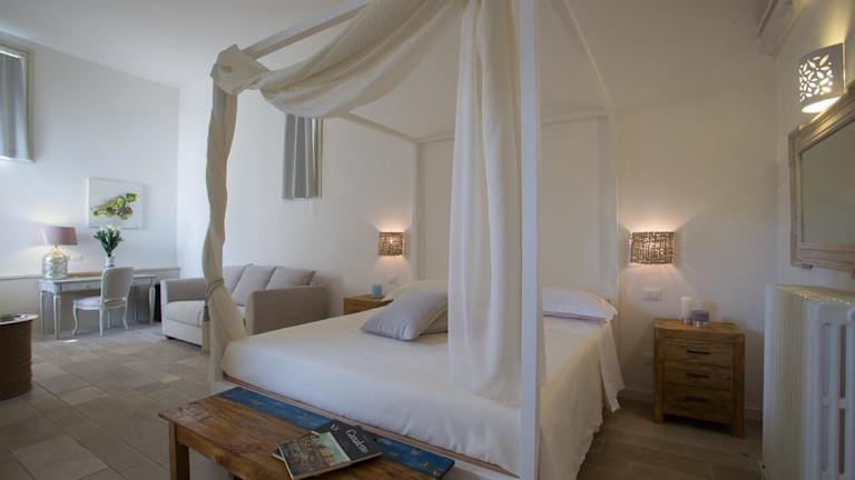 Die Zimmer im Li Pappi Antico Casale sind komfortabel und stilvoll eingerichtet. Die klimatisierten Zimmer verfügen über gewölbte Decken und bieten eine gemütliche Atmosphäre. Ein Flachbild-TV sorgt für Unterhaltung und in einigen Zimmern können Sie den Pool- oder Gartenblick genießen. Die privaten Badezimmer sind mit einer Dusche, einem Bademantel und kostenlosen Pflegeprodukten ausgestattet. Kostenloses WLAN steht Ihnen im gesamten Hotel zur Verfügung.