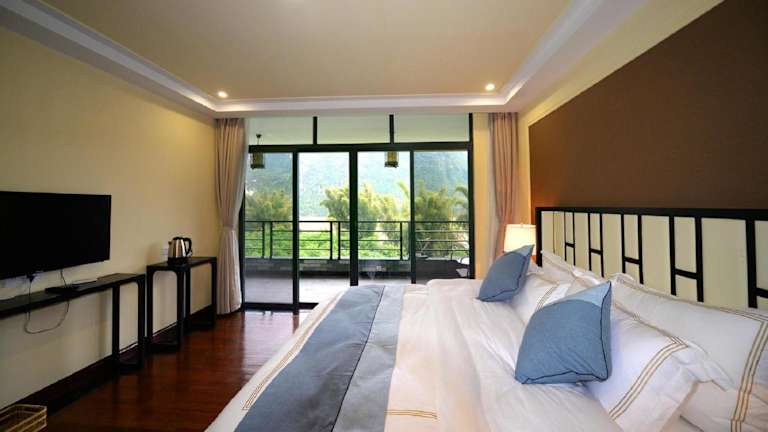 Das Li-river Island Resort Xingping Yangshuo liegt nur 300 Meter vom Ufer des malerischen Li Jiang entfernt. Es ist von üppigen Pampelmusenwäldern umgeben und befindet sich am Fuße des Yuanbao-Berges, der auf dem 20-Yuan-Schein abgebildet ist.