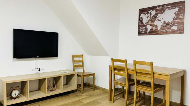 Die Ferienwohnung umfasst ein Schlafzimmer, ein Wohnzimmer und eine voll ausgestattete Küche mit Kühlschrank. Des Weiteren bietet sie ein Badezimmer mit Dusche und kostenlosen Pflegeprodukten. Die Unterkunft verfügt über eine Veranda und stellt Handtücher sowie Bettwäsche zur Verfügung.