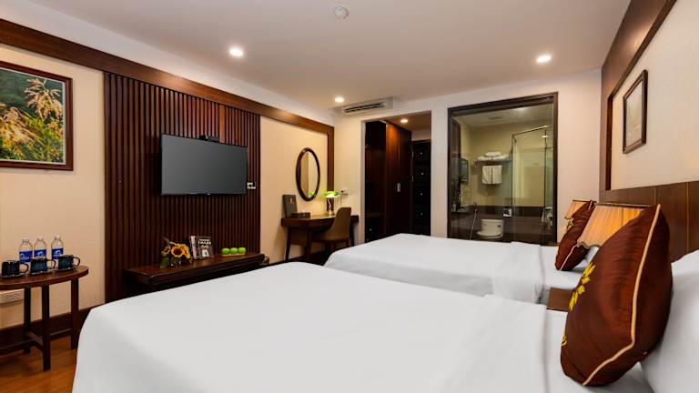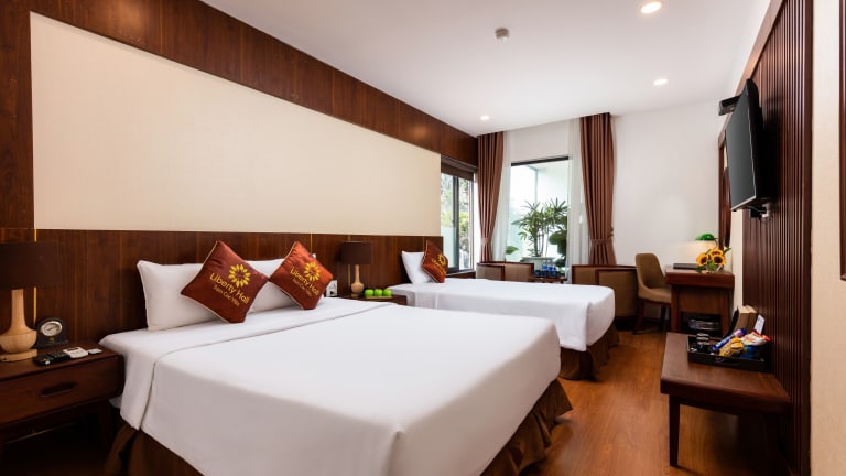 Das Liberty Hall Tam Coc Hotel & Villa in Hoa Lu ist ein charmantes Hotel in den Bergen, das Ihnen einen erholsamen Aufenthalt bietet. Mit einer Vielzahl von Annehmlichkeiten wie einem Innenpool, einem Fahrradverleih und kostenfreiem WLAN können Sie Ihren Urlaub in vollen Zügen genießen. Das Hotel verfügt auch über zwei Restaurants und eine Bar, in denen Sie köstliche Speisen und erfrischende Getränke genießen können. Die Zimmer sind komfortabel eingerichtet und bieten modernen Komfort wie kostenloses Internet und einen Smart-TV. Die Lage des Hotels ist ideal für Outdoor-Aktivitäten wie Wandern und Fahrradfahren und bietet auch in der Nähe Sehenswürdigkeiten wie die Bích-Động-Pagode und den Landschaftskomplex Tràng An.