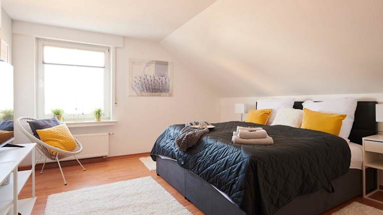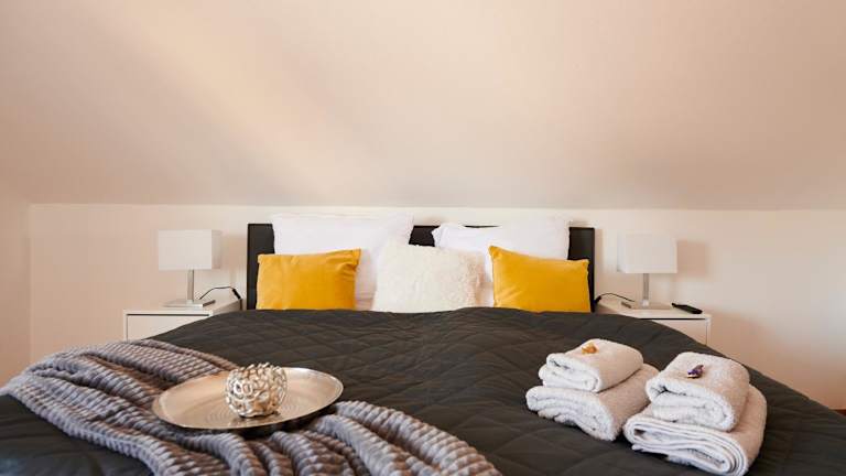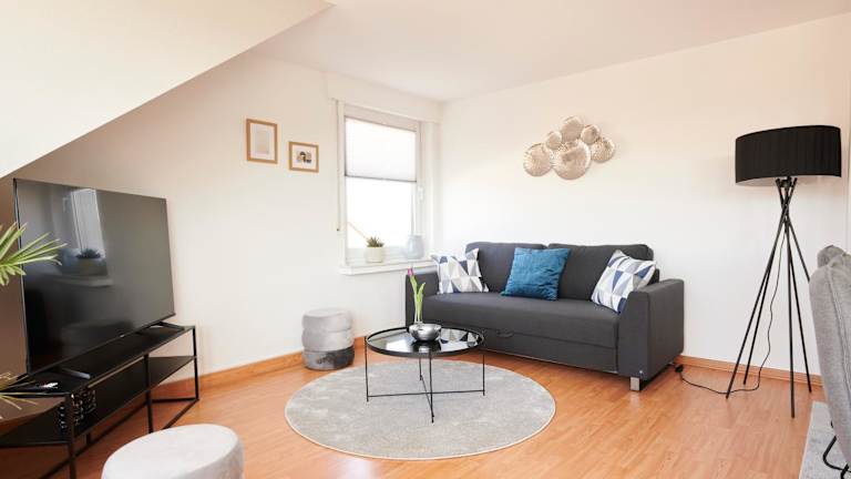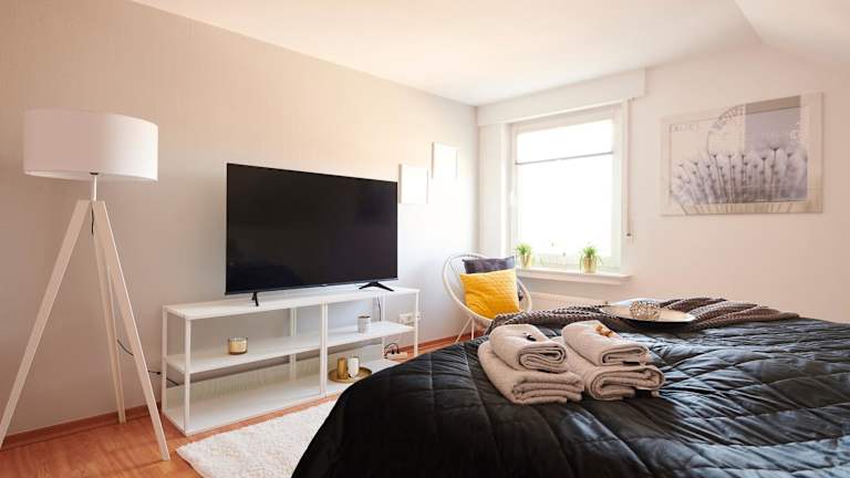 Die Wohnung besteht aus einem Schlafzimmer, einem Wohnzimmer sowie einer voll ausgestatteten Küche mit Kühlschrank und Kaffeemaschine. Das Badezimmer ist mit einer Badewanne und kostenlosen Pflegeprodukten ausgestattet. Handtücher und Bettwäsche werden bereitgestellt.