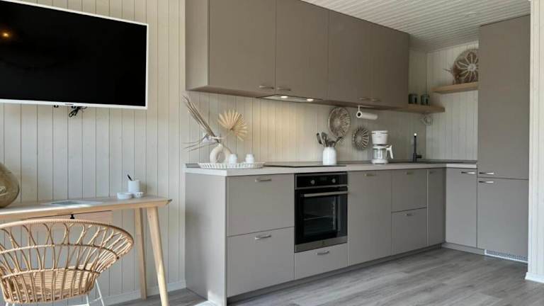 Das klimatisierte Apartment im Ferienhaus Deluxe verfügt über zwei komfortable Schlafzimmer, in denen bis zu vier Personen Platz finden. Die Unterkunft bietet auch eine voll ausgestattete Küche, in der Gäste ihre eigenen Mahlzeiten zubereiten können. Es gibt auch zwei Badezimmer für zusätzlichen Komfort. Ein Flachbild-TV ist im Apartment vorhanden, damit Gäste ihre Lieblingssendungen und Filme genießen können.