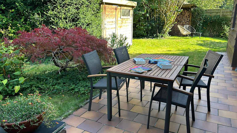 Das Ferienhaus umfasst 3 Schlafzimmer und 1 Badezimmer. Zur Ausstattung gehören Bettwäsche, Handtücher, ein Flachbild-TV mit Kabelkanälen, ein Essbereich sowie eine voll ausgestattete Küche. Eine Terrasse mit Gartenblick ist ebenfalls vorhanden.