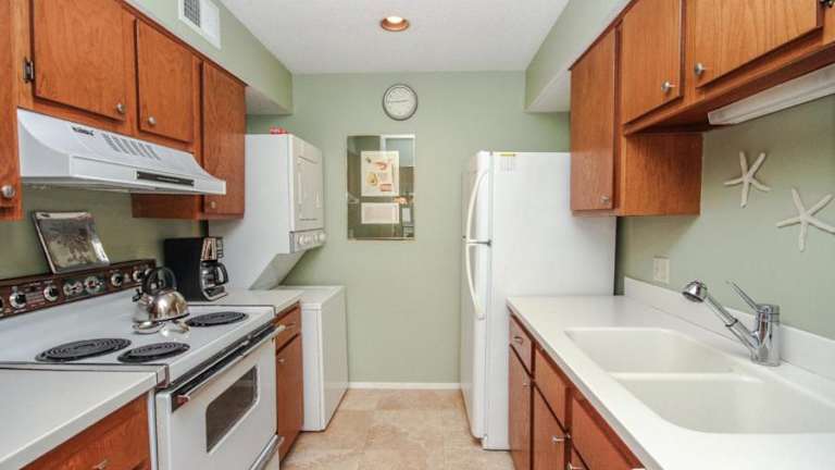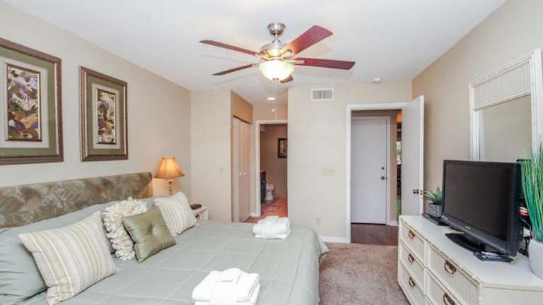 Die Ferienwohnung umfasst 2 separate Schlafzimmer, eine voll ausgestattete Küche mit Kühlschrank und Geschirrspüler sowie 2 Badezimmer. Zur Ausstattung gehört zudem ein TV mit Kabelkanälen. Die Unterkunft verfügt über Klimaanlage und WLAN in allen Bereichen.
