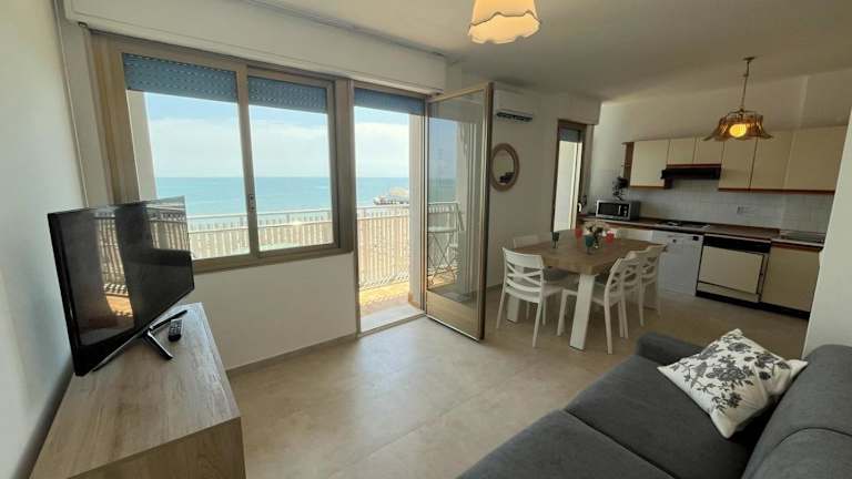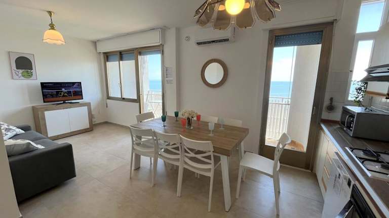 Das Lignano Sabbiadoro sea front and sea view bietet klimatisierte Übernachtungsmöglichkeiten mit Meerblick und eigener Terrasse. Die Unterkunft verfügt über 3 Schlafzimmer und ein Wohnzimmer, das mit einem Flachbild-TV ausgestattet ist, und eine gut ausgestattete Küchenzeile. Zudem sind kostenlose WLAN-Anschlüsse in der gesamten Unterkunft verfügbar.