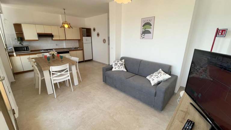 Die Ferienwohnung umfasst 3 Schlafzimmer, ein Wohnzimmer, eine gut ausgestattete Küchenzeile mit Kühlschrank und Geschirrspüler sowie ein Badezimmer mit Dusche. Zustelloptionen wie Handtücher und Bettwäsche sind gegen Aufpreis erhältlich. Neben einer Terrasse mit Meerblick sind auch Nichtraucherzimmer und Familienzimmer vorhanden.