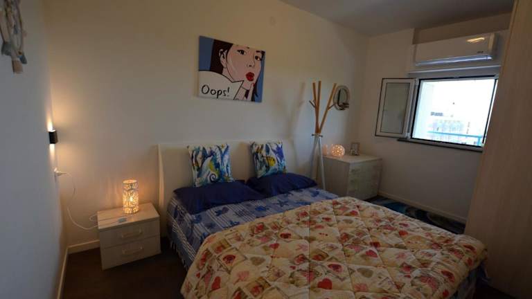 Die Ferienwohnung verfügt über zwei Schlafzimmer, ein Wohnzimmer, einen Flachbild-TV sowie eine gut ausgestattete Küchenzeile mit Kühlschrank und Mikrowelle. Ein Badezimmer mit Bidet ist ebenfalls vorhanden. Auf Anfrage können Handtücher und Bettwäsche gegen Aufpreis bereitgestellt werden. Die Unterkunft bietet einen Balkon mit Stadtblick.