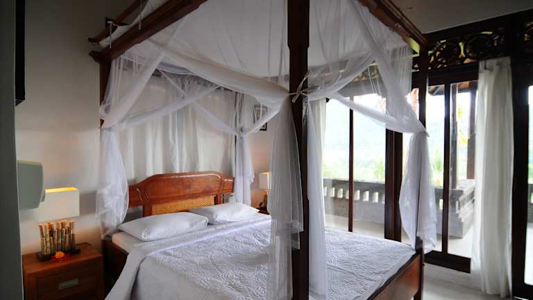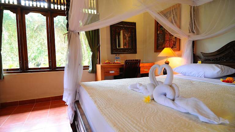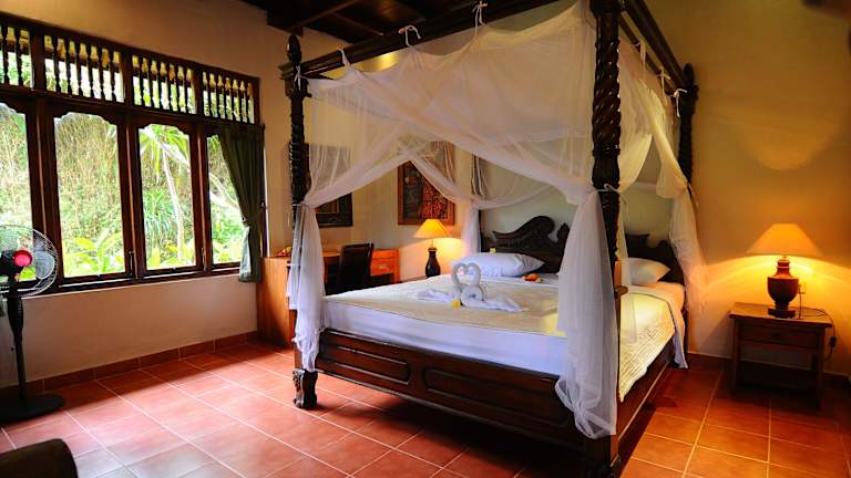 Die Zimmer im Landhausstil der Villa Karma Loka sind mit dunklen Holzmöbeln und einem Ventilator ausgestattet. Jedes Zimmer verfügt über eine Terrasse mit einem gemütlichen Sitzbereich. Das eigene Badezimmer im Freien bietet eine Dusche und kostenfreie Pflegeprodukte. Kostenloses WLAN steht Ihnen in allen Zimmern zur Verfügung.