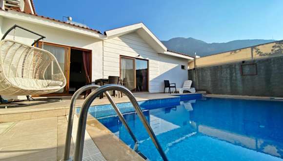 Die Likya Akik 2+1 Villa, Özel Havuzlu, bietet eine Unterkunft mit einem saisonalen Außenpool, einem Garten und einer Gemeinschaftslounge. Die Villa ist klimatisiert und verfügt über 2 Schlafzimmer, ein Wohnzimmer sowie 2 Badezimmer mit Dusche und Whirlpool. Zudem steht den Gästen kostenloses WLAN zur Verfügung.