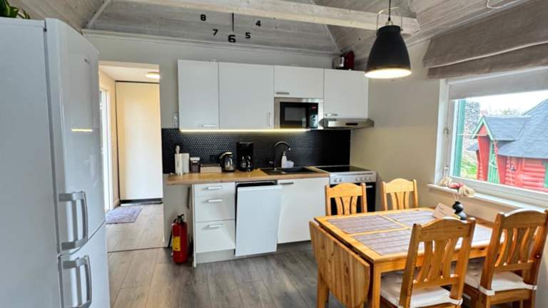 Das Ferienhaus verfügt über 1 Schlafzimmer, ein Wohnzimmer und eine gut ausgestattete Küche, die mit einem Kühlschrank und einem Geschirrspüler ausgestattet ist. Handtücher und Bettwäsche werden ebenfalls bereitgestellt.