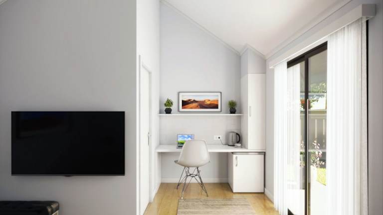 Die Zimmer sind mit Klimaanlage und Heizung ausgestattet und bieten einen Seeblick von Balkon oder Terrasse. Die Unterbringung verfügt über verschiedene Bettoptionen (Doppelbett, Queensize-Bett, Kingsize-Bett) und bietet auch Baby- und Zustellbetten an. Die Kochnischen sind mit Kühlschrank, Mikrowelle und Tee-/Kaffeemaschine ausgestattet. Eine Minibar, ein Schreibtisch sowie ein TV-Gerät, DVD-Player und kostenloses WLAN ergänzen die Ausstattung. Die Badezimmer sind mit Dusche und Badewanne sowie über Pflegeprodukte und Handtücher verfügen. Spezielle rollstuhlgerechte Zimmer sind ebenfalls buchbar.