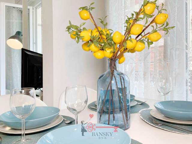 Die Ferienwohnung verfügt über ein Schlafzimmer, ein Wohnzimmer und eine gut ausgestattete Küche. Zur Ausstattung gehören ein Kühlschrank, ein Geschirrspüler sowie Handtücher und Bettwäsche. Zusätzliche Annehmlichkeiten umfassen WLAN und einen privaten Parkplatz.