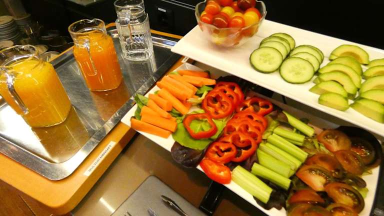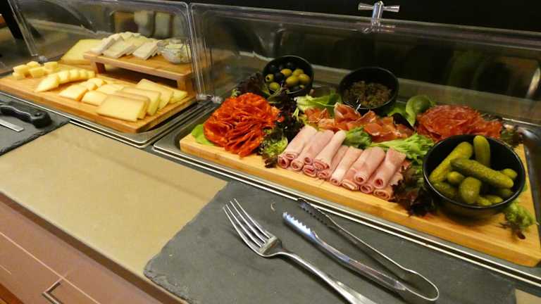 Jeden Morgen wird ein Frühstück in Buffetform im Hotel angeboten, welches den Gästen eine Auswahl an Speisen bietet.