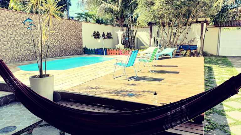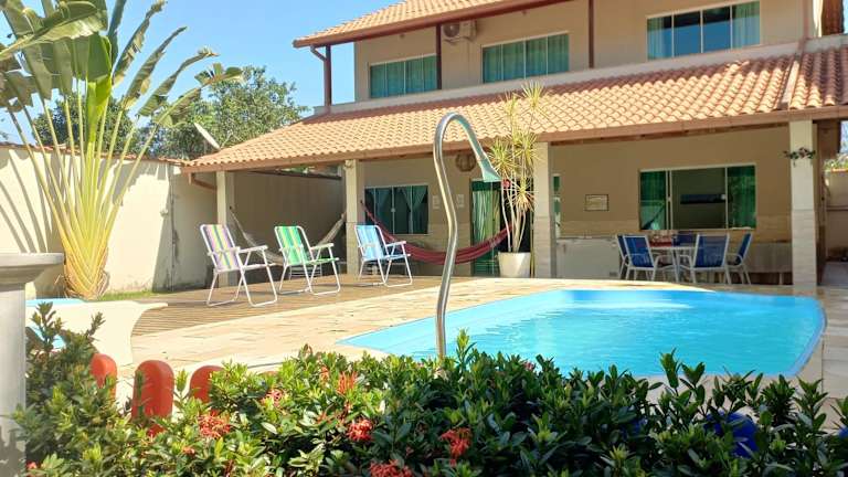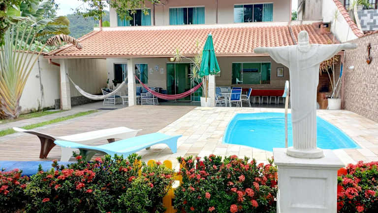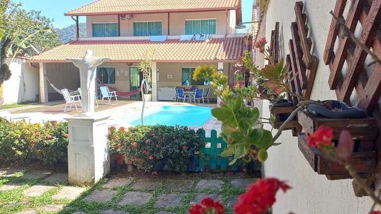 Das Linda casa com piscina aquecida no interior do RJ ist ein wunderschönes Ferienhaus mit Blick auf die Berge und einem Außenpool. Hier können Sie Ihren Urlaub in Ruhe und Privatsphäre genießen. Mit 4 Schlafzimmern, einem geräumigen Wohnzimmer und einer voll ausgestatteten Küche bietet das Ferienhaus viel Platz für Familien oder Gruppen. Der Außenpool lädt zum Entspannen und Abkühlen ein und der Balkon bietet einen herrlichen Blick auf die umliegende Landschaft. Parkplätze stehen Ihnen kostenlos zur Verfügung.