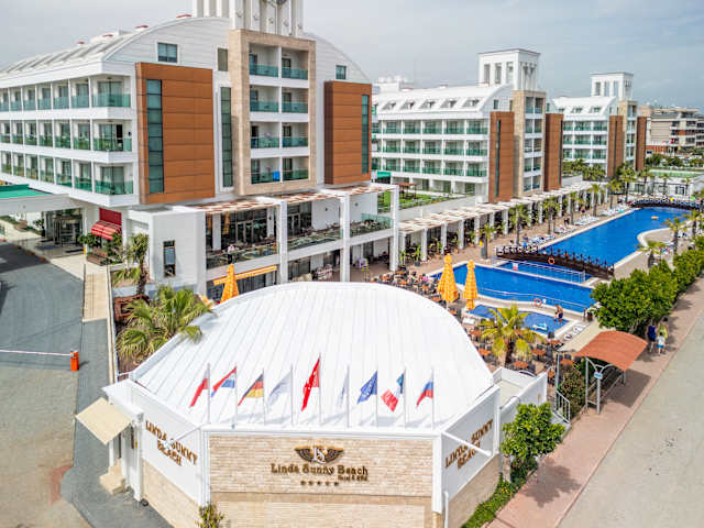 Das Linda Sunny Beach bietet Ihnen von Standardzimmern, Familienzimmern bis hin zu Behindertenfreundlich Zimmern, eine breitgefächerte Auswahl. Wi-Fi,Klimaanlage Zentral, Laminatboden, Safe, LCD-TV, Telefon, Minibar und Föhn, sind hierbei Hauptbestandteil des Zimmers. Genießen Sie die moderne Zimmer die Stilvoll eingerichtet für einen unvergesslichen Aufenthalt in Side. Ultra All Inklusive Das Hotel hat Ultra All Inklusive. Der Vorteil dieses Konzept ist die Myra Bar die 24 Stunden Geöffnet ist und lokale Getränke anbietet Inbegriffen des Konzepts. Frühstück, Mittagessen und Abendessen im Restaurant vom Buffet. Diverse lokale alkoholische (ab 18 Jahren) und nicht alkoholische Getränke sind an den jeweils geöffneten Bars 24 stunden inklusive. Ihr Minikühlschrank wird einmal täglich mit lokale Getränke gefüllt. Nachmittags werden Kaffee, Tee und landestypisches Gebäck angeboten. Gegen Gebühr: Import Getränke (ab 18 Jahren), Import Cocktails und frische Fruchtsäfte Zum leicht abfallenden Sandstrand. Für den Weg zum Strand steht ein kostenloser Shuttle Service zur Verfügung. Die Entfernung nach Side beträgt ca.13 km und 16 km nach Manavgat. Minibus und Taxi Verbindungen sind vorhanden. Transferzeit vom Flughafen Antalya ca. 45 Minuten.