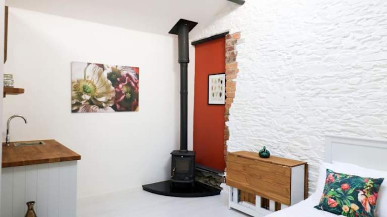 Das Ferienhaus verfügt über eine Küche, die mit einem Kühlschrank, einer Herdplatte und einer Kaffeemaschine ausgestattet ist. Es sind Handtücher und Bettwäsche vorhanden.