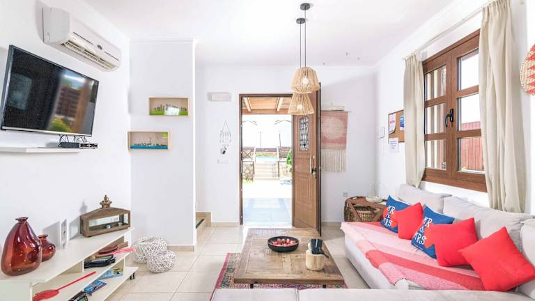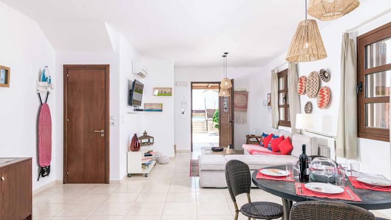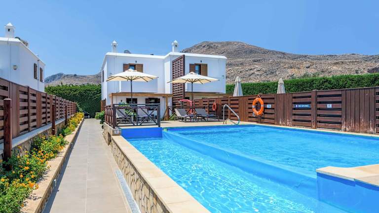 Die Villa im Lindos Ruby verfügt über 2 Schlafzimmer und 1 Badezimmer. Die klimatisierten Zimmer sind gemütlich und komfortabel eingerichtet und bieten Ihnen eine erholsame Atmosphäre. Die Villa verfügt über Sat-TV und eine voll ausgestattete Küche, in der Sie Ihre eigenen Mahlzeiten zubereiten können. Bettwäsche und Handtücher werden gestellt, um Ihnen einen angenehmen Aufenthalt zu ermöglichen. Genießen Sie auch die Terrasse mit einem herrlichen Blick auf die umliegenden Berge.