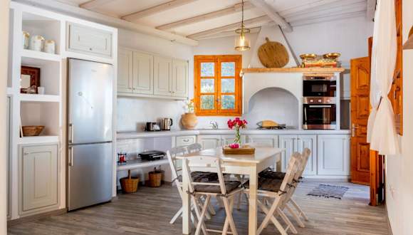 In der Lindos Seaside Villa steht eine voll ausgestattete Küche mit einem Kühlschrank und einer Kaffeemaschine zur Verfügung. Zudem werden Handtücher und Bettwäsche bereitgestellt.