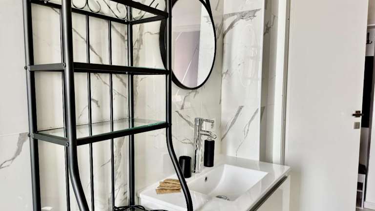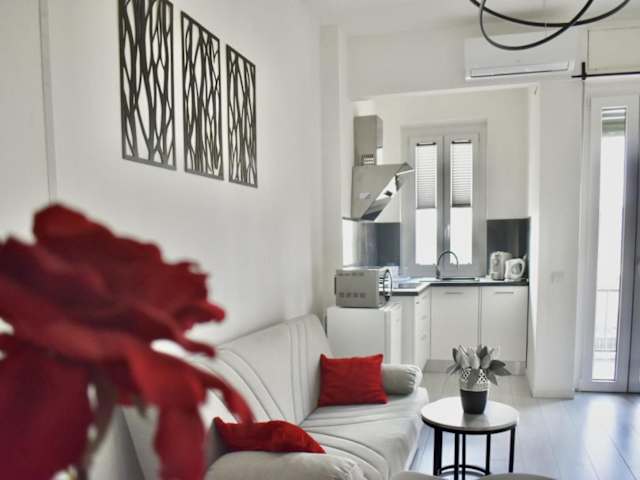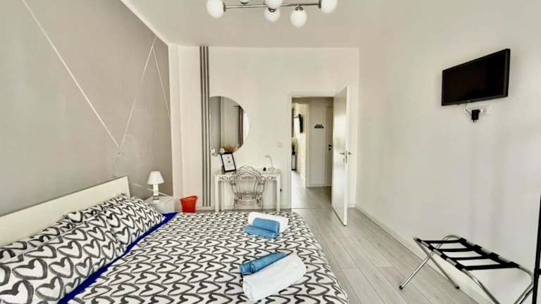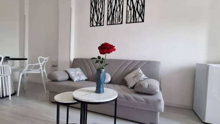 Die Ferienwohnung umfasst 1 Schlafzimmer und ein Wohnzimmer. Die voll ausgestattete Küche verfügt über einen Kühlschrank und eine Kaffeemaschine. Das Badezimmer ist mit einem Bidet und einer Dusche ausgestattet. Zur weiteren Ausstattung gehört ein Flachbild-TV sowie ein Balkon und ein Wasserkocher.