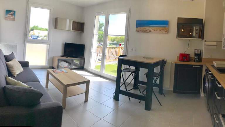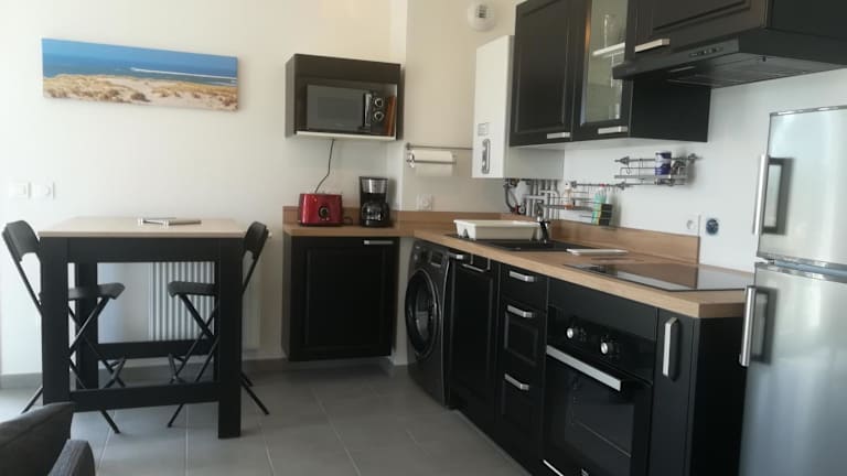 Das Hotel Links in Mimizan bietet komfortable Apartments mit Balkon in der Nähe der schönen Strände Plage des Ailes, Plage Nord de la Corniche und Plage du Courant. Die Unterkunft verfügt über eine Terrasse und kostenfreie Privatparkplätze. Das Apartment ist gut ausgestattet und bietet alles, was Sie für einen angenehmen Aufenthalt benötigen. Genießen Sie die Grillmöglichkeiten und erkunden Sie die Umgebung, einschließlich des Strandes Plage de la Garluche und des Museums für Kunst und Tradition. Der Flughafen Bordeaux ist nur 116 km entfernt.