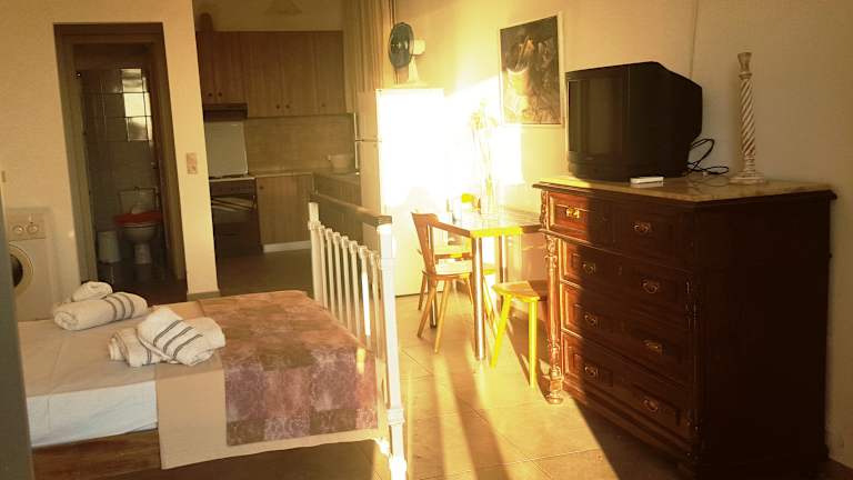 Im Liogerma können Sie Ihre Mahlzeiten selbst zubereiten und in Ihrem eigenen Essbereich genießen. Wenn Sie jedoch lieber essen gehen möchten, finden Sie in der näheren Umgebung viele Restaurants und Cafés, die griechische und internationale Küche servieren.