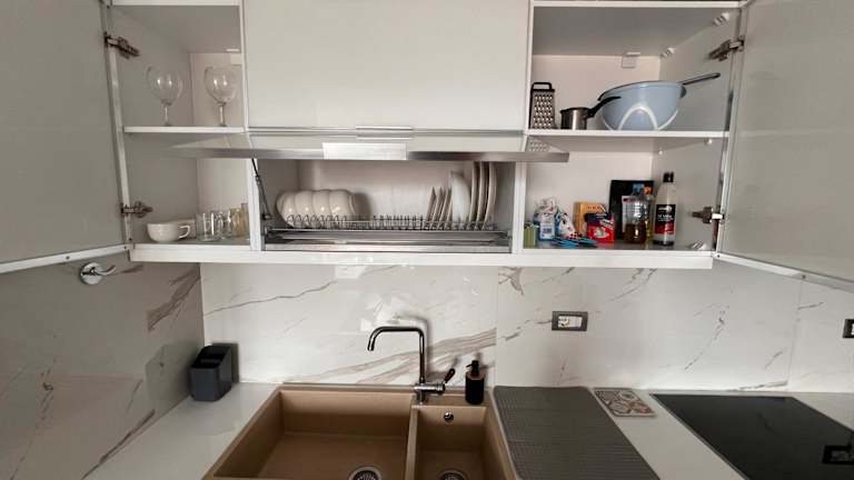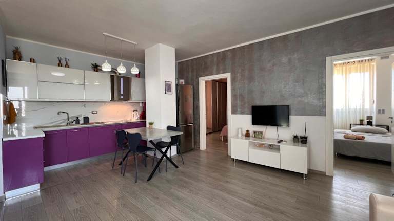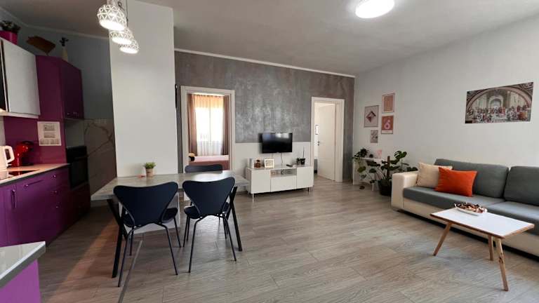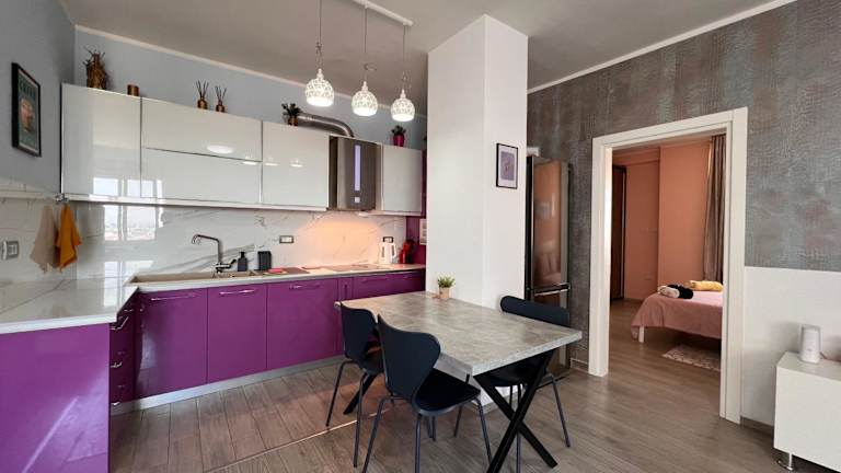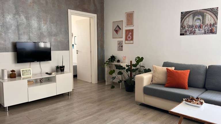 Die Ferienwohnung besteht aus 2 Schlafzimmern, einem Wohnzimmer und einer voll ausgestatteten Küche, die einen Kühlschrank und einen Wasserkocher umfasst. Des Weiteren ist ein Badezimmer mit Bidet und Dusche vorhanden. Handtücher und Bettwäsche werden bereitgestellt.