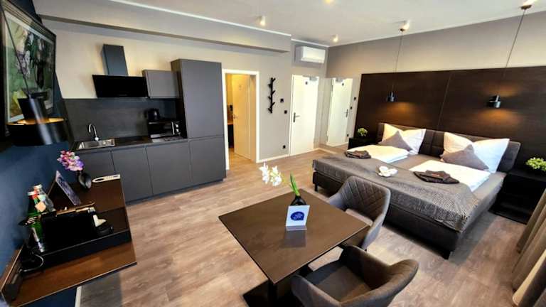 Die Wohneinheiten sind mit Klimaanlage, einem Flachbild-TV mit Satellitenprogrammen, Kühlschrank, Kaffeemaschine, Dusche und kostenlosen Pflegeprodukten ausgestattet. In den Zimmern sind Wasserkocher, eigenes Badezimmer mit Haartrockner sowie Bettwäsche und Handtücher verfügbar. Ausgewählte Zimmer bieten zudem eine Küchenzeile mit Geschirrspüler.