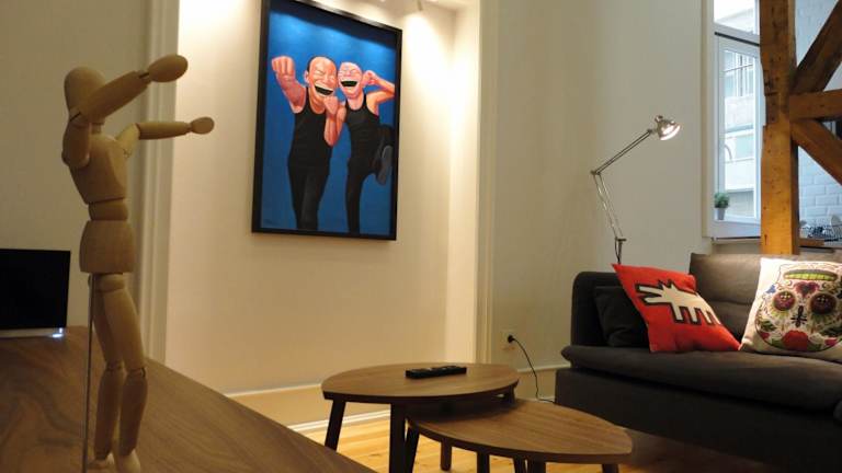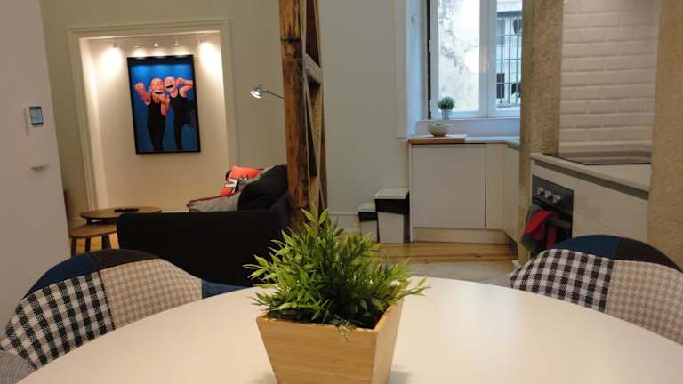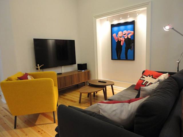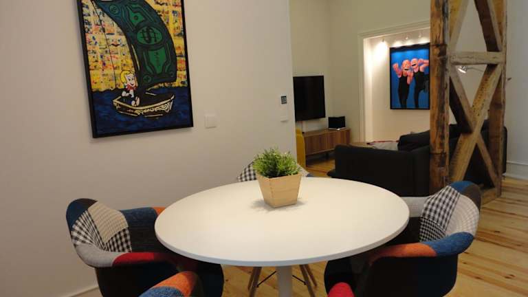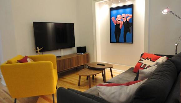 Das Lisbon Center Modern Art Apartment ist ein modernes, klimatisiertes Apartment, das mit verschiedenen Designstücken und echten Pop-Art-Gemälden dekoriert ist.