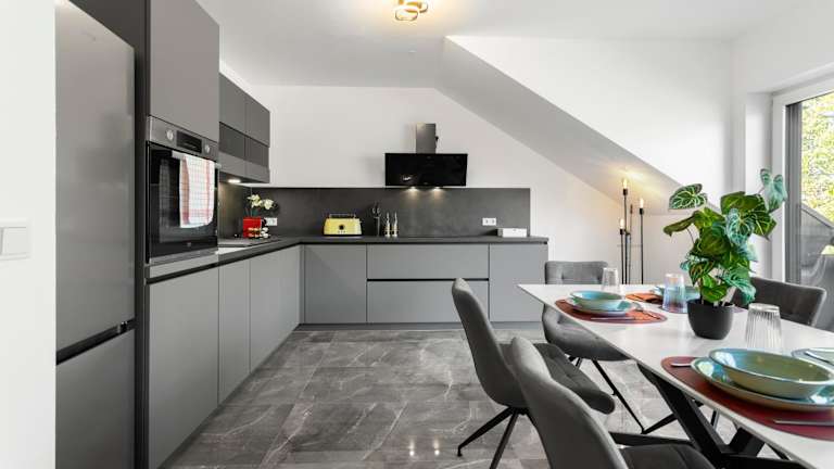 Die Apartments sind ausgestattet mit einem Flachbild-TV und einem eigenen Badezimmer, das eine Dusche und einen Haartrockner beinhaltet. Die Küche ist umfassend eingerichtet und verfügt unter anderem über einen Kühlschrank, Geschirrspüler, Ofen, Herdplatte, Toaster, Kaffeemaschine und Wasserkocher.
