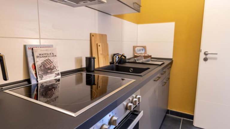 Die Ferienwohnung verfügt über ein Schlafzimmer, ein Wohnzimmer sowie eine voll ausgestattete Küche, die mit einem Kühlschrank und einer Kaffeemaschine ausgestattet ist. Zudem gibt es ein Badezimmer mit Dusche und Haartrockner. Handtücher, Bettwäsche und Wäsche werden bereitgestellt und nach den Richtlinien der örtlichen Behörden gewaschen.