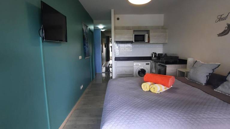 Die Unterkunft umfasst 1 Schlafzimmer und 1 Badezimmer. Zur Ausstattung gehören Bettwäsche, Handtücher, ein Flachbild-TV mit Satellitenkanälen, ein Essbereich sowie eine voll ausgestattete Küche. Eine Terrasse mit Stadtblick ist ebenfalls vorhanden.